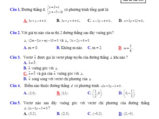 Đề kiểm tra 1 tiết Hình học 10 chương 3 năm 2018 – 2019 trường Thị xã Quảng Trị gồm 2 mã đề: đề số […]