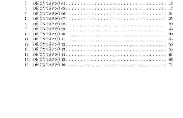 + 8 đề thi tiếp theo (đề 09 đến 16) mỗi đề gồm 50 câu hỏi và bài toán trắc nghiệm khách quan, các đề này có cấu trúc tương tự với các đề thi học kỳ 1 Toán 12 của các sở Giáo dục và Đào tạo trên cả nước ở những năm học trước, 8 đề này được sử dụng cho tất cả các đối tượng học sinh.Trích dẫn 16 đề ôn thi HK1 Toán 12 năm học 2019 – 2020 có đáp án: