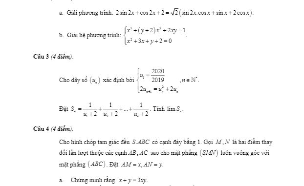 Trích dẫn đề chọn đội tuyển HSG Toán 12 năm 2019 – 2020 trường Lê Quý Đôn – Hà Nội: