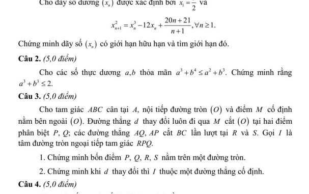 Ngày … tháng 10 năm 2020, sở Giáo dục và Đào tạo tỉnh Quảng Trị tổ chức kỳ thi chọn đội tuyển học sinh giỏi văn hóa lớp 12 THPT dự thi Quốc gia môn Toán năm học 2020 – 2021.Đề chọn đội tuyển HSG Toán 12 THPT năm 2020 – 2021 sở GD&ĐT Quảng Trị gồm hai vòng thi: đề thi vòng 1 gồm 04 câu, đề thi vòng 2 gồm 03 câu.Trích dẫn đề chọn đội tuyển HSG Toán 12 THPT năm 2020 – 2021 sở GD&ĐT Quảng Trị: