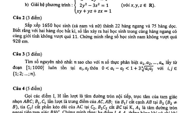 + Tìm số nguyên nhỏ nhất n sao cho với n số thực phân biệt a1, a2 … an lấy từ đoạn [1;1000] luôn tồn tại ai, aj thỏa 0 < ai – aj < 1+ 3√aiaj với i, j thuộc {1, 2 … n}.