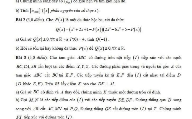 Đề chọn đội tuyển thi HSG Toán Quốc gia năm 2020 – 2021 sở GD&ĐT Hưng Yên gồm 02 bài thi; bài thi thứ nhất gồm 04 bài toán, thời gian làm bài 180 phút; bài thi thứ hai gồm 03 bài toán, thời gian làm bài 180 phút; kỳ thi được diễn ra vào ngày 09 và 10 tháng 09 năm 2020.