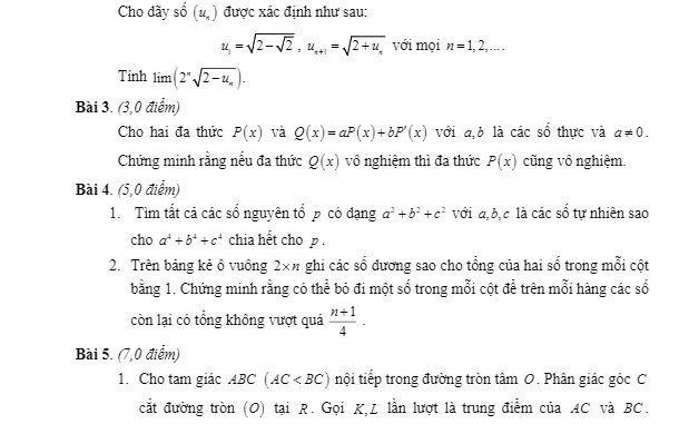 Ngày 22 tháng 10 năm 2019, sở Giáo dục và Đào tạo tỉnh Bình Định tổ chức kỳ thi chọn học sinh giỏi cấp tỉnh môn Toán lớp 12 năm học 2019 – 2020.Đề chọn học sinh giỏi tỉnh Toán 12 năm học 2019 – 2020 sở GD&ĐT Bình Định gồm có 05 bài toán tự luận, đề thi gồm có 01 trang, thời gian làm bài 180 phút.Trích dẫn đề chọn học sinh giỏi tỉnh Toán 12 năm 2019 – 2020 sở GD&ĐT Bình Định: