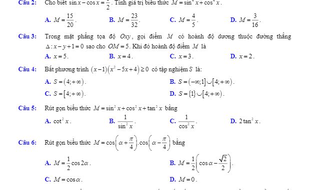 ToanHAY.com giới thiệu đến quý thầy, cô giáo và các em học sinh đề thi kết thúc HK2 Toán 10 năm học 2019 – 2020 trường THPT Quang Trung, quận Đống Đa, thành phố Hà Nội; đề thi gồm 05 trang với 50 câu hỏi và bài toán dạng trắc nghiệm, thời gian làm bài 90 phút.Trích dẫn đề kết thúc HK2 Toán 10 năm 2019 – 2020 trường THPT Quang Trung – Hà Nội: