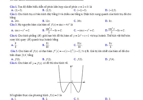 Trích dẫn đề khảo sát chất lượng Toán 12 năm 2018 – 2019 sở GD&ĐT Phú Thọ: