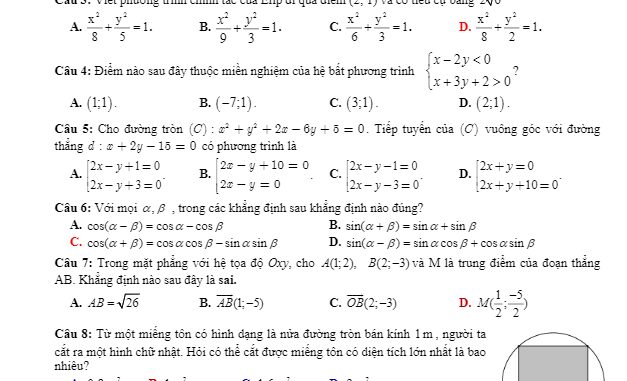 Trích dẫn đề khảo sát đầu năm Toán 11 năm 2019 – 2020 trường Lương Tài 2 – Bắc Ninh: