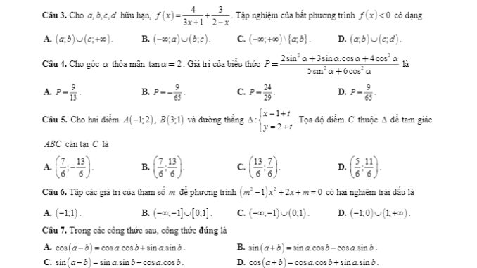 Trích dẫn đề khảo sát Toán 11 đầu năm học 2019 – 2020 trường Thuận Thành 1 – Bắc Ninh: