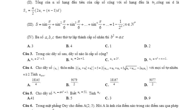 Đề khảo sát Toán 11 lần 2 năm 2019 – 2020 trường THPT Lý Thường Kiệt – Bắc Ninh