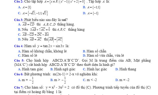 Trích dẫn đề khảo sát Toán 11 lần 3 năm 2018 – 2019 trường Lý Nhân Tông – Bắc Ninh: