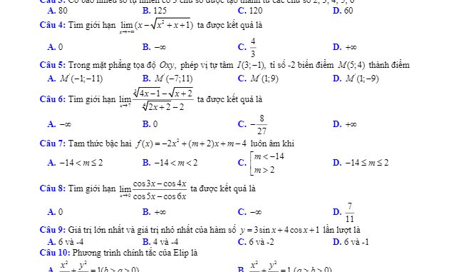 Ngày … tháng 06 năm 2020, trường THPT Yên Lạc, tỉnh Vĩnh Phúc tổ chức kỳ thi khảo sát chất lượng môn Toán lớp 11 năm học 2019 – 2020 lần thi thứ ba.Đề khảo sát Toán 11 lần 3 năm 2019 – 2020 trường THPT Yên Lạc – Vĩnh Phúc gồm 50 câu trắc nghiệm khách quan, thời gian làm bài thi là 90 phút, đề thi có đáp án mã đề 501 và mã đề 507.Trích dẫn đề khảo sát Toán 11 lần 3 năm 2019 – 2020 trường THPT Yên Lạc – Vĩnh Phúc: