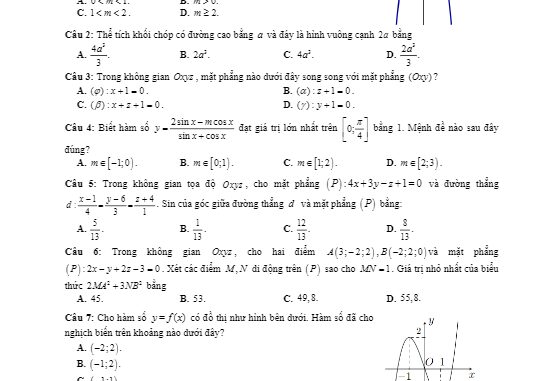 Trích dẫn đề khảo sát Toán 12 năm 2018 – 2019 trường THPT Tiên Lãng – Hải Phòng: