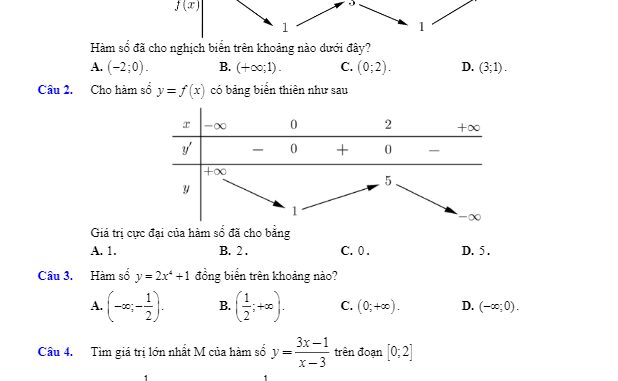 Trích dẫn đề kiểm tra 1 tiết Giải tích 12 chương 1 năm 2019 – 2020 trường Chà Cang – Điện Biên: