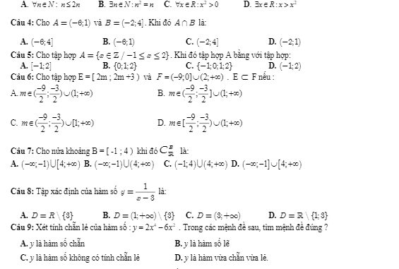 + Xét tính chẵn lẻ của hàm số: y = 2x^4 – 6x^2. Trong các mệnh đề sau, tìm mệnh đề đúng?