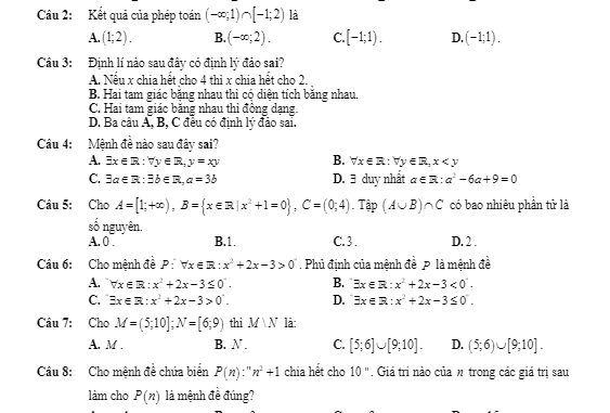 + Trong các mệnh đề sau, mệnh đề nào đúng?