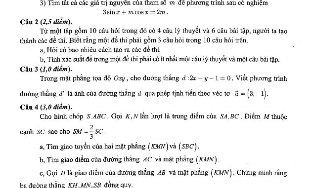 a. Tìm giao tuyến của hai mặt phẳng (KMN) và (SBC). b. Tìm giao điểm của đường thẳng AC và mặt phẳng (KMN).