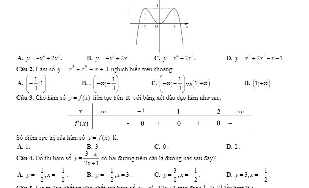 + Cho hàm số y = x^4 + 4x^2 + 2. Mệnh đề nào dưới đây là mệnh đề đúng?