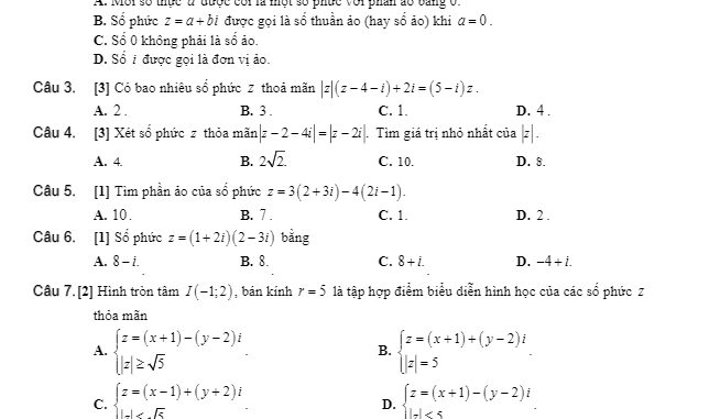 + Cho số phức z thỏa |z – 1 + i| = 2. Chọn phát biểu đúng: