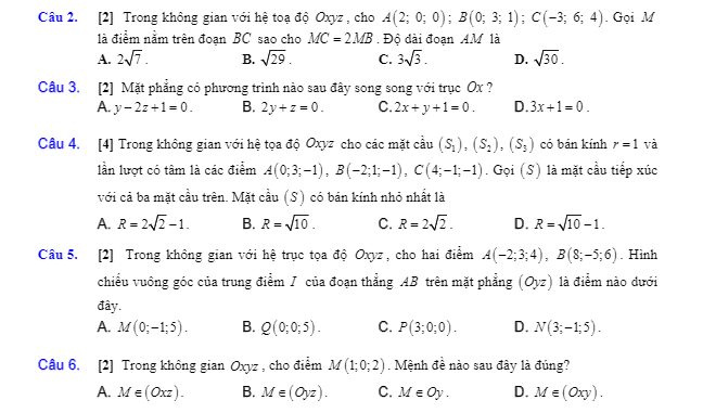 Trích dẫn đề kiểm tra Hình học 12 chương 3 năm 2018 – 2019 trường Đoàn Thượng – Hải Dương: