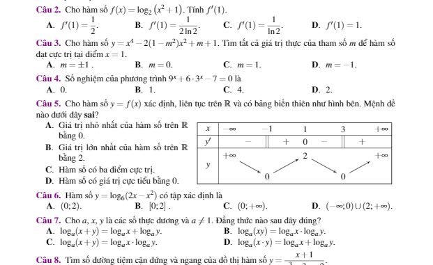 + Cho hàm số y = f(x) có đồ thị (C) như hình vẽ. Khẳng định nào sau đây sai?