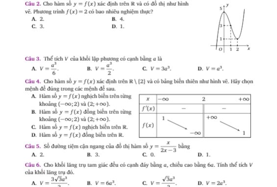 Đề kiểm tra học kì 1 Toán 12 năm 2019 – 2020 sở GD&ĐT Hưng Yên