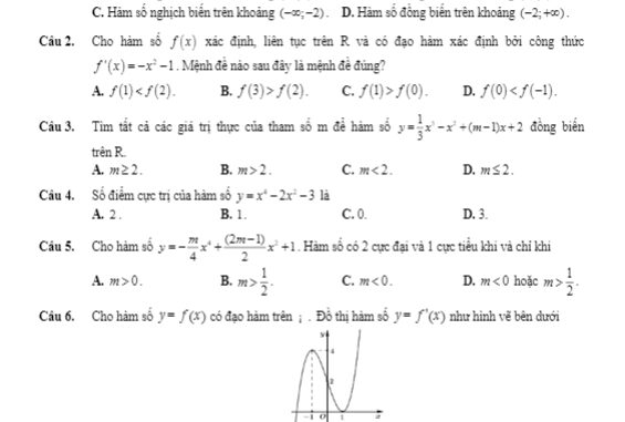 + Đường cong trong hình dưới đây là đồ thị của một trong bốn hàm số được liệt kê ở bốn phương án A, B, C, D. Hỏi hàm số đó là hàm số nào?