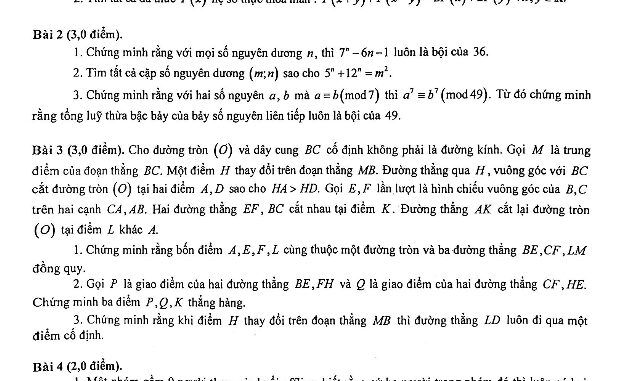 + Cho đường tròn (O) và dây cung BC cố định không phải là đường kính. Gọi M là trung điểm của đoạn thẳng BC. Một điểm H thay đổi trên đoạn thẳng MB. Đường thẳng qua H, vuông góc với BC cắt đường tròn (O) tại hai điểm A, D sao cho HA > HD. Gọi E, F lần lượt là hình chiếu vuông góc của B,C trên hai cạnh CA, AB. Hai đường thẳng EF, BC cắt nhau tại điểm K. Đường thẳng AK cắt lại đường tròn (O) tại điểm L khác A.