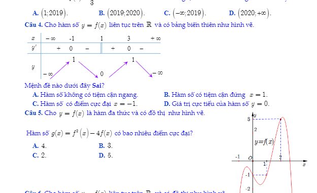 Đề kiểm tra lần 1 Toán 12 năm học 2019 – 2020 trường THPT Quốc Thái – An Giang là đề kiểm tra định kỳ Giải tích 12 chương 1 – ứng dụng đạo hàm để khảo sát và vẽ đồ thị hàm số, đề có mã đề 001, gồm 03 trang với 20 câu trắc nghiệm, học sinh có 45 phút để làm bài kiểm tra, đề kiểm tra có đáp án mã đề 001, 004, 007, 010.Trích dẫn đề kiểm tra lần 1 Toán 12 năm 2019 – 2020 trường THPT Quốc Thái – An Giang: