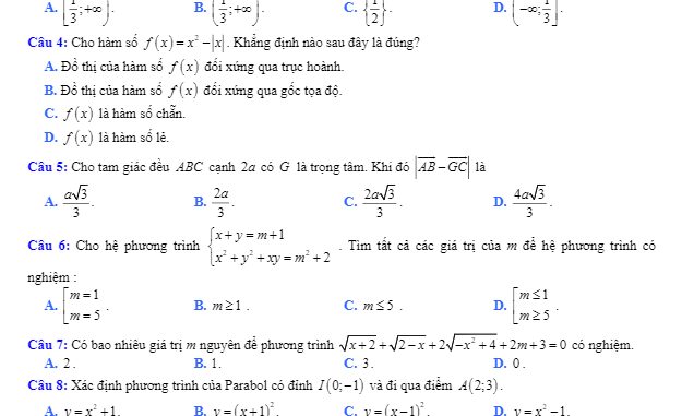 + Cho hàm số f(x) = x^2 – |x|. Khẳng định nào sau đây là đúng?