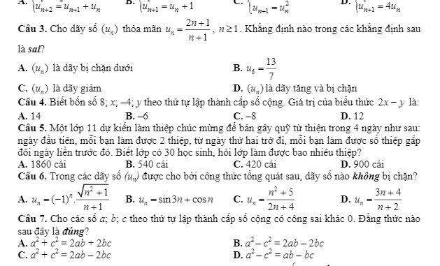 + Một lớp 11 dự kiến làm thiệp chúc mừng để bán gây quỹ từ thiện trong 4 ngày như sau: ngày đầu tiên, mỗi bạn làm được 2 thiệp, từ ngày thứ hai trở đi, mỗi bạn làm được số thiệp gấp đôi ngày liền trước đó. Biết lớp có 30 học sinh, hỏi lớp làm được bao nhiêu thiệp?