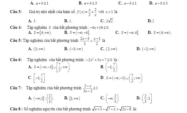 + Cho biểu thức f(x) = ax^2 + bx + c (a ≠ 0) và ∆ = b^2 – 4ac. Chọn khẳng định đúng?