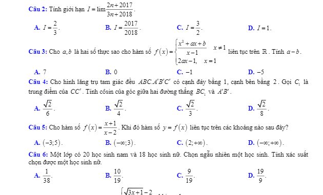 Đề sát hạch Toán 11 lần 3 năm 2019 – 2020 trường THPT Đoàn Thượng – Hải Dương