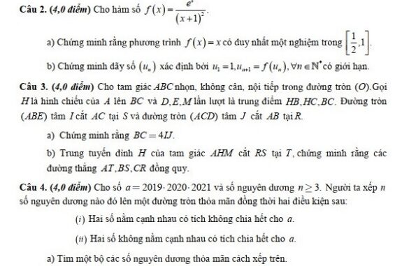 + Cho số a = 2019.2020.2021 và số nguyên dương n >= 3. Người ta xếp n số nguyên dương nào đó lên một đường tròn thỏa mãn đồng thời hai điều kiện sau:
