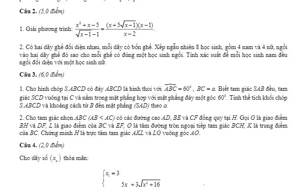 Đề thi chọn học sinh giỏi Toán 12 năm 2019 – 2020 sở GD&ĐT Quảng Trị