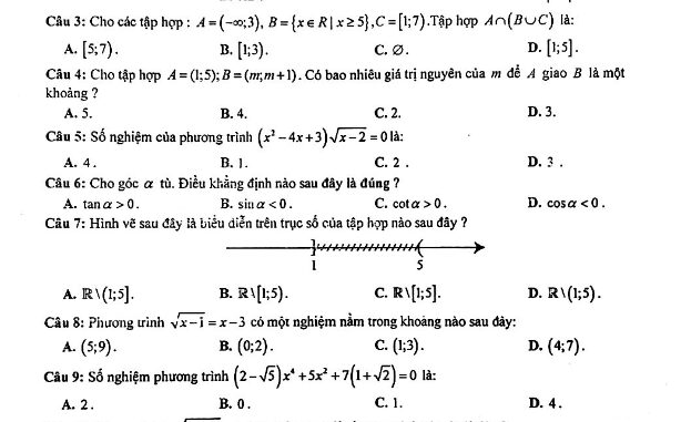 Đề thi HK1 Toán 10 năm 2019 – 2020 trường chuyên Nguyễn Huệ – Hà Nội