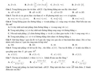 Đề thi HK1 Toán 11 năm 2019 – 2020 trường Dương Quảng Hàm – Hưng Yên