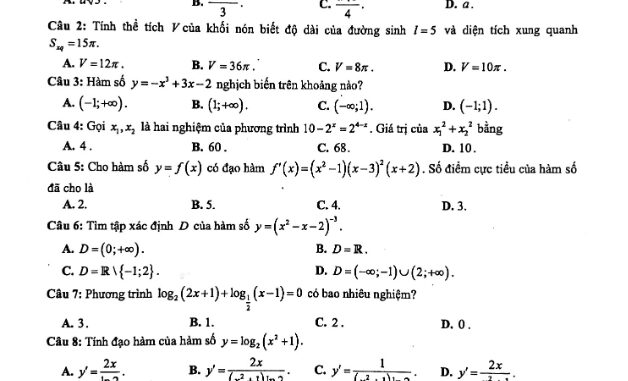 Chủ Nhật ngày 15 tháng 12 năm 2019, trường THCS và THPT Nguyễn Khuyến, thành phố Hồ Chí Minh tổ chức kì thi kiểm tra cuối học kì 1 môn Toán lớp 12 năm học 2019 – 2020.Đề thi HK1 Toán 12 năm học 2019 – 2020 trường THCS&THPT Nguyễn Khuyến – TP HCM mã đề 485 gồm có 04 trang với 30 câu trắc nghiệm và 04 câu tự luận, thời gian học sinh làm bài là 90 phút.Trích dẫn đề thi HK1 Toán 12 năm 2019 – 2020 trường Nguyễn Khuyến – TP HCM: