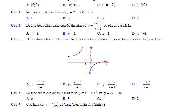 A. Hàm số đồng biến trên (0;+ vô cùng). B. Hàm số nghịch biến trên (- vô cùng;0).