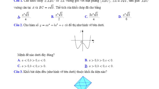 Thứ Năm ngày 19 tháng 12 năm 2019, sở Giáo dục và Đào tạo thành phố Cần Thơ tổ chức kỳ thi kiểm tra chất lượng môn Toán lớp 12 hệ Giáo dục Trung học Phổ thông giai đoạn cuối học kì 1 năm học 2019 – 2020.Đề thi HK1 Toán 12 năm học 2019 – 2020 sở GD&ĐT Cần Thơ có mã đề 103, đề gồm có 08 trang với 50 câu trắc nghiệm, học sinh làm bài trong 90 phút, đề thi có đáp án.Trích dẫn đề thi HK1 Toán 12 năm học 2019 – 2020 sở GD&ĐT Cần Thơ: