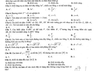 Đề thi học kỳ 1 Toán 12 năm học 2019 – 2020 sở GD&ĐT Vĩnh Phúc