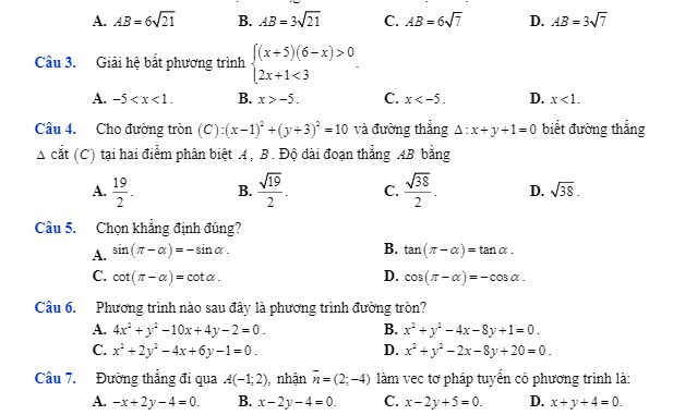ToanHAY.com giới thiệu đến quý thầy, cô giáo cùng các em học sinh lớp 10 đề thi HK2 Toán 10 năm 2018 – 2019 trường Phạm Văn Đồng – Quảng Ngãi, kỳ thi nhằm kiểm tra chất lượng môn Toán lớp 10 trong học kỳ vừa qua, đề thi có mã đề 158, đề gồm 4 trang với 35 câu trắc nghiệm và 3 câu tự luận, thời gian học sinh làm bài kiểm tra học kỳ là 90 phút, đề thi có đáp án và lời giải chi tiết.Ma trận đề thi HK2 Toán 10 năm 2018 – 2019 trường Phạm Văn Đồng – Quảng Ngãi: