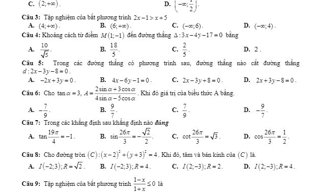 Thứ Năm ngày 18 tháng 06 năm 2020, trường THPT Phan Ngọc Hiển, huyện Năm Căn, tỉnh Cà Mau tổ chức kỳ thi kiểm tra chất lượng môn Toán lớp 10 giai đoạn cuối học kỳ 2 năm học 2019 – 2020.Đề thi HK2 Toán 10 năm 2019 – 2020 trường THPT Phan Ngọc Hiển – Cà Mau mã đề 106 gồm 10 câu trắc nghiệm và 04 câu tự luận, đề thi gồm 02 trang, thời gian làm bài 90 phút, đề thi có đáp án và lời giải chi tiết.Trích dẫn đề thi HK2 Toán 10 năm 2019 – 2020 trường THPT Phan Ngọc Hiển – Cà Mau:
