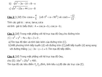 Đề thi học kỳ 2 Toán 10 năm 2019 – 2020 trường THPT Lương Văn Cù – An Giang