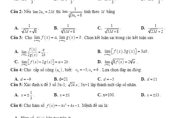 + Cho hàm số f(x) xác định trên [a;b]. Trong các mệnh đề sau, mệnh đề nào đúng?