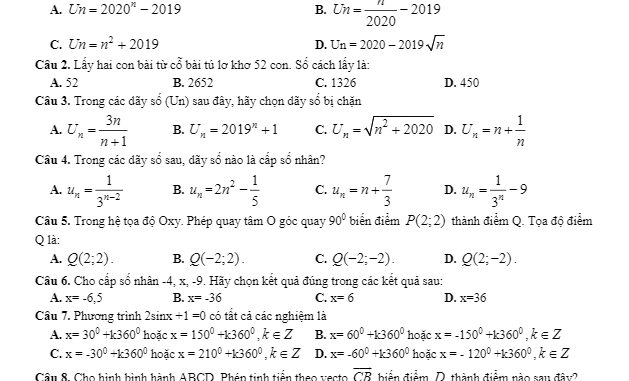 Theo đúng như kế hoạch đã đề ra trong phân phối chương trình Toán 11, ngày … tháng 12 năm 2019, trường THPT Ngô Gia Tự, tỉnh Đắk Lắk tổ chức kỳ thi kiểm tra học kỳ 1 môn Toán lớp 11 năm học 2019 – 2020.ToanHAY.com giới thiệu đến quý thầy, cô giáo và các em học sinh lớp 11 đề thi HKI Toán 11 năm 2019 – 2020 trường THPT Ngô Gia Tự – Đắk Lắk, đề có mã đề 001 gồm 02 trang, đề được biên soạn theo dạng đề trắc nghiệm khách quan kết hợp với tự luận, phần trắc nghiệm gồm có 20 câu, chiếm 4,0 điểm, phần tự luận gồm 03 câu, chiếm 6,0 điểm, học sinh có 90 phút để hoàn thành bài thi, đề thi có đáp án và lời giải chi tiết.Trích dẫn đề thi HKI Toán 11 năm 2019 – 2020 trường THPT Ngô Gia Tự – Đắk Lắk: