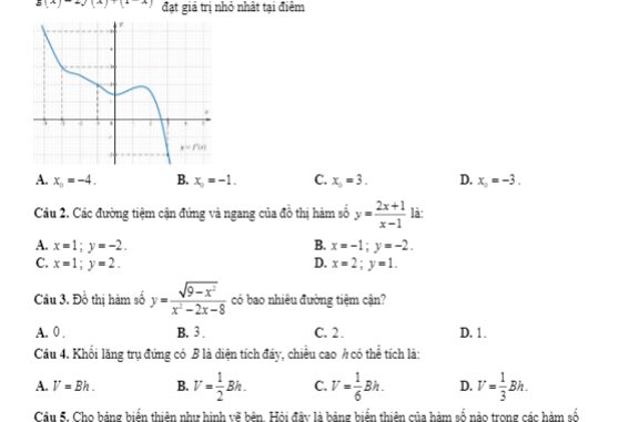 + Cho hàm số y = (x + 2)/(2x – 1) có đồ thị như hình 1. Đồ thị hình 2 là đồ thị của hàm số nào sau đây?