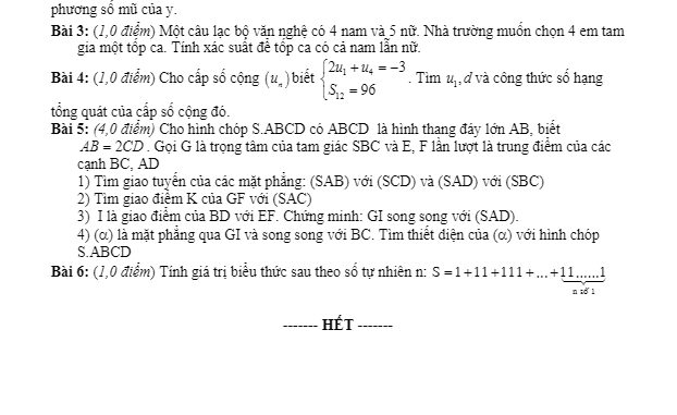 Đề thi học kì 1 Toán 11 năm 2019 – 2020 trường Nguyễn Chí Thanh – TP HCM
