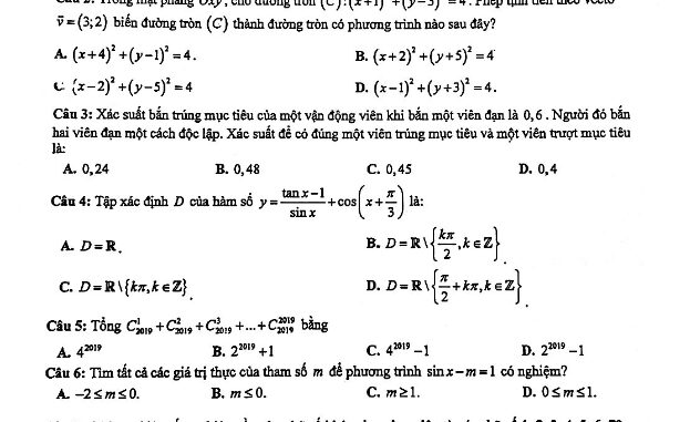 Đề thi học kì 1 Toán 11 năm 2019 – 2020 trường THPT Trần Phú – Hà Nội