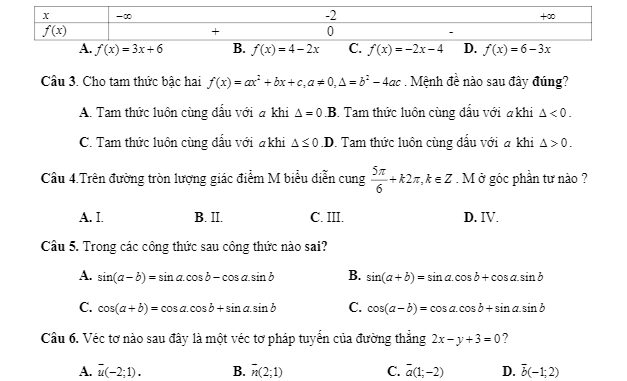 + Nhớ các khái niệm: Bất phương trình, tam thức bậc hai, cung và góc lượng giác, các công thức lượng giác, các dạng phương trình đường thẳng, phương trình đường tròn.