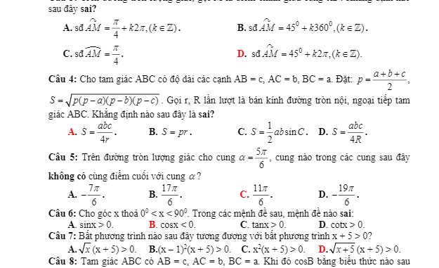 Trích dẫn đề thi học kì 2 Toán 10 năm học 2018 – 2019 sở GD&ĐT Quảng Bình: