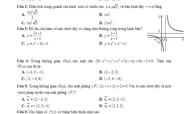 Đề thi học kì 2 Toán 12 năm 2019 – 2020 trường THPT Trần Hưng Đạo – Nam Định